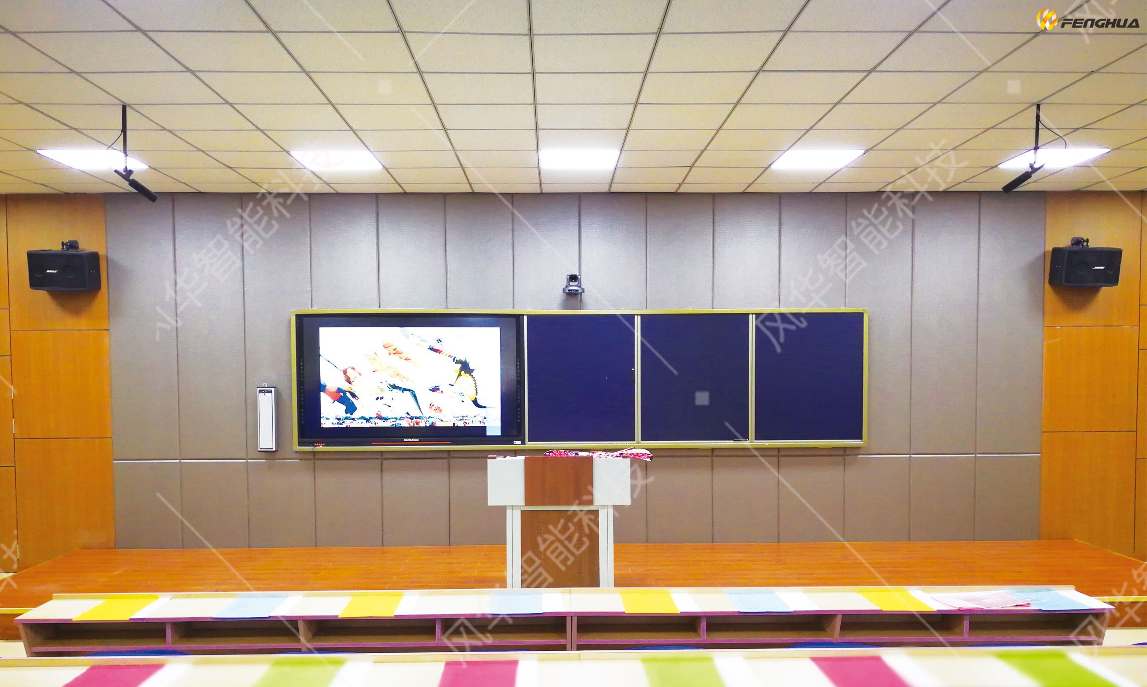 • 具備舞美燈光系統(tǒng),能夠滿足于會議報告、文藝演出等多種使用要求;