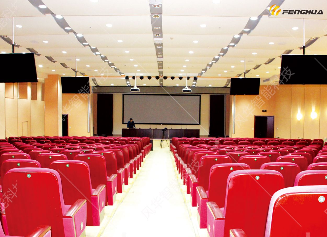 整個(gè)系統(tǒng)大致分為顯示與監(jiān)視、拾音與擴(kuò)聲、信號(hào)傳輸與控制、攝像照明燈光等四部分。由大屏幕顯示、音響、同聲翻譯、視頻監(jiān)視錄像、多媒體音視頻信號(hào)源矩陣切換和中央集成控制、攝像照明燈光及控制等部分組成。全部信號(hào)的切換及分配均在控制室進(jìn)行。